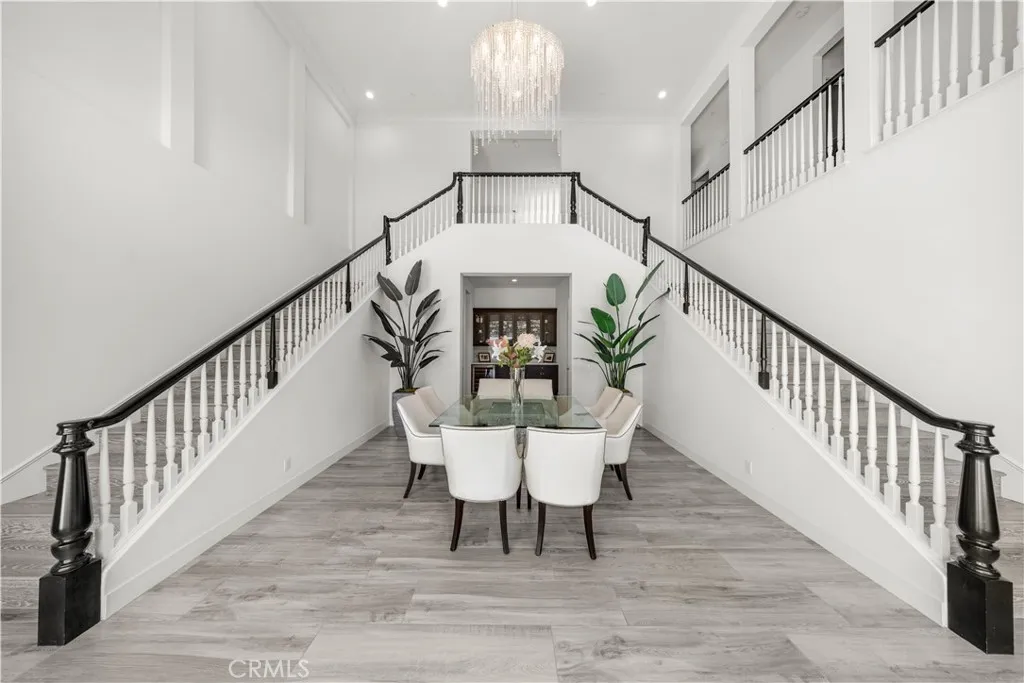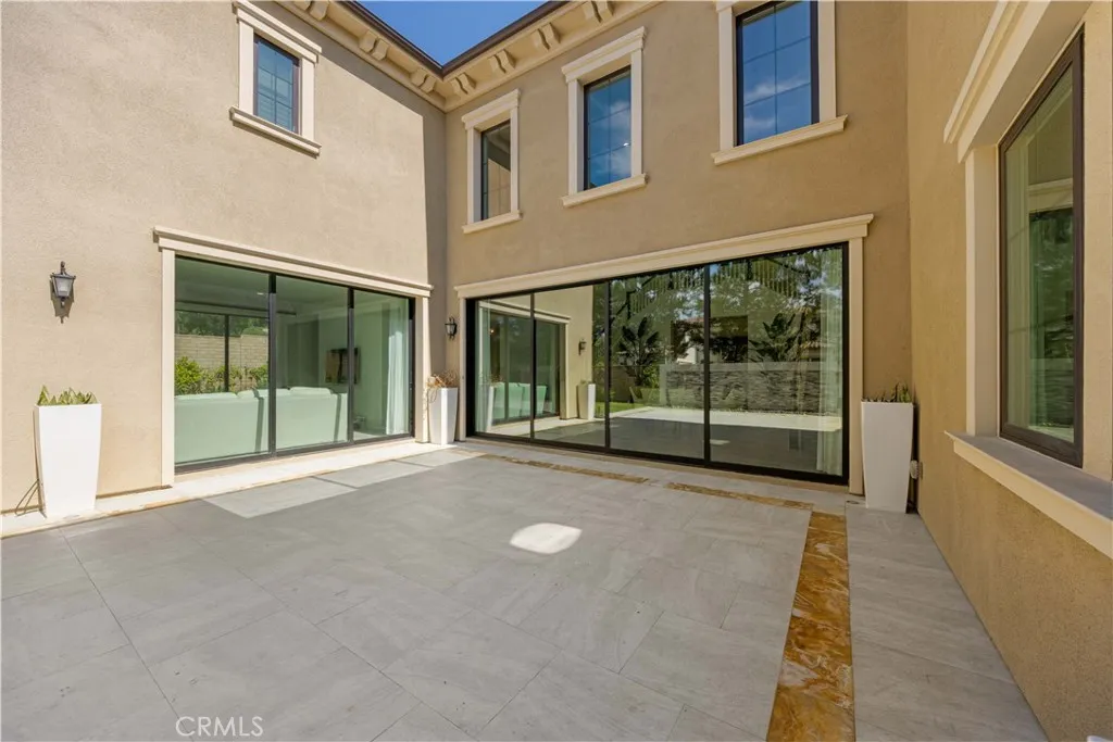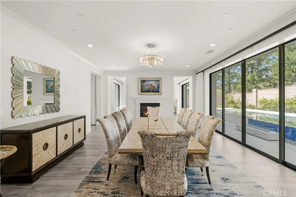 The Groves at Orchard Hills, a 13,000 sqft premium corner lot. Offering 5 bedrooms, 5.5 bathrooms, and 6,029 sqft of thoughtfully designed living space, this residence is a true showpiece. A gracious covered porch sets the tone as you enter an expansive, light-filled floor plan where oversized windows bathe every room in natural light. The grand dining room is an entertainers dream, framed by soaring 20-foot double-volume ceilings and an elegant dual staircase, with serene views into the private interior courtyard. Ideal for hosting dinner parties. In the living and family rooms, full-wall corner glass pocket doors dissolve the boundary between indoors and out, opening seamlessly to the beautifully appointed backyard, complete with an outdoor kitchen, BBQ, sparkling pool, fireplace, water fountain, and lounge area, perfect for year-round entertaining. The gourmet chefs kitchen is outfitted with a generous quartz center island, full designer backsplashes, a Wolf 6-burner range, dual Sub-Zero refrigerators, and a dedicated prep kitchen. The main level also features a private en-suite bedroom and an oversized 4-car garage. Upstairs, a generous loft and media room, anchors the upper level. The primary suite is a sanctuary unto itself, boasting a private balcony, refined coffered ceilings, a tranquil sitting retreat, a spa-inspired bath, and an expansive walk-in closet fit for royalty. Three additional en-suite bedrooms and a conveniently located laundry room complete the upper floor. Additional highlights include fully paid solar panels. Residents of The Groves enjoy resort-sty
