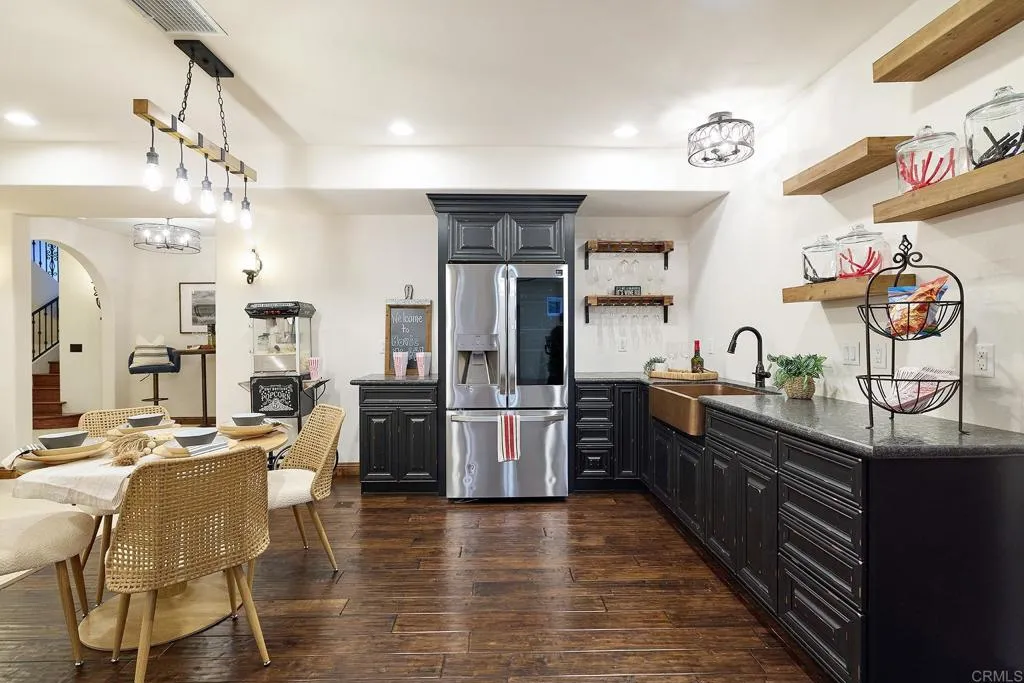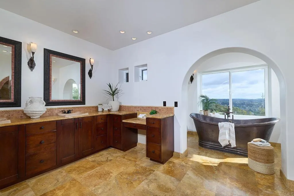 Seller will entertain offers between $3,998,800-$4,198,800. Perched on a rare -acre homesite with sweeping ocean and lagoon views, this exquisite custom residencecrafted in 2007embodies timeless elegance and refined coastal living. Spanning approximately 5,565 square feet, including a beautifully finished ~1,500 sq ft basement apartment with private entry, this one-of-a-kind estate offers both grandeur and versatility. A dramatic 30-foot entry turret sets the tone, welcoming you into a home defined by soaring proportions and artisan detail. The main level features 10-foot ceilings, while the upper and lower levels offer 9-foot ceilings, enhancing the sense of space throughout. Wide archways, exposed beam ceilings, and a rich blend of natural stone, distressed wood, and wool-carpeted floors create a warm yet sophisticated aesthetic. The staircase is a true work of art, adorned with hand-painted Mexican tiles that add character and charm. Designed for seamless indoor-outdoor living, a La Cantina-style door opens to an expansive loggiaperfect for al fresco dining and entertainingwhere you can unwind while taking in breathtaking sunset views over the ocean. The chefs kitchen is nothing short of spectacular, appointed with top-tier Wolf and Sub-Zero professional appliances, custom distressed wood cabinetry, and an oversized island with breakfast bar seating. Thoughtful details include dual dishwashers, a hammered copper farmhouse sink, and a separate copper prep sinkideal for both everyday living and hosting on a grand scale. A climate-controlled wine room adds another layer of